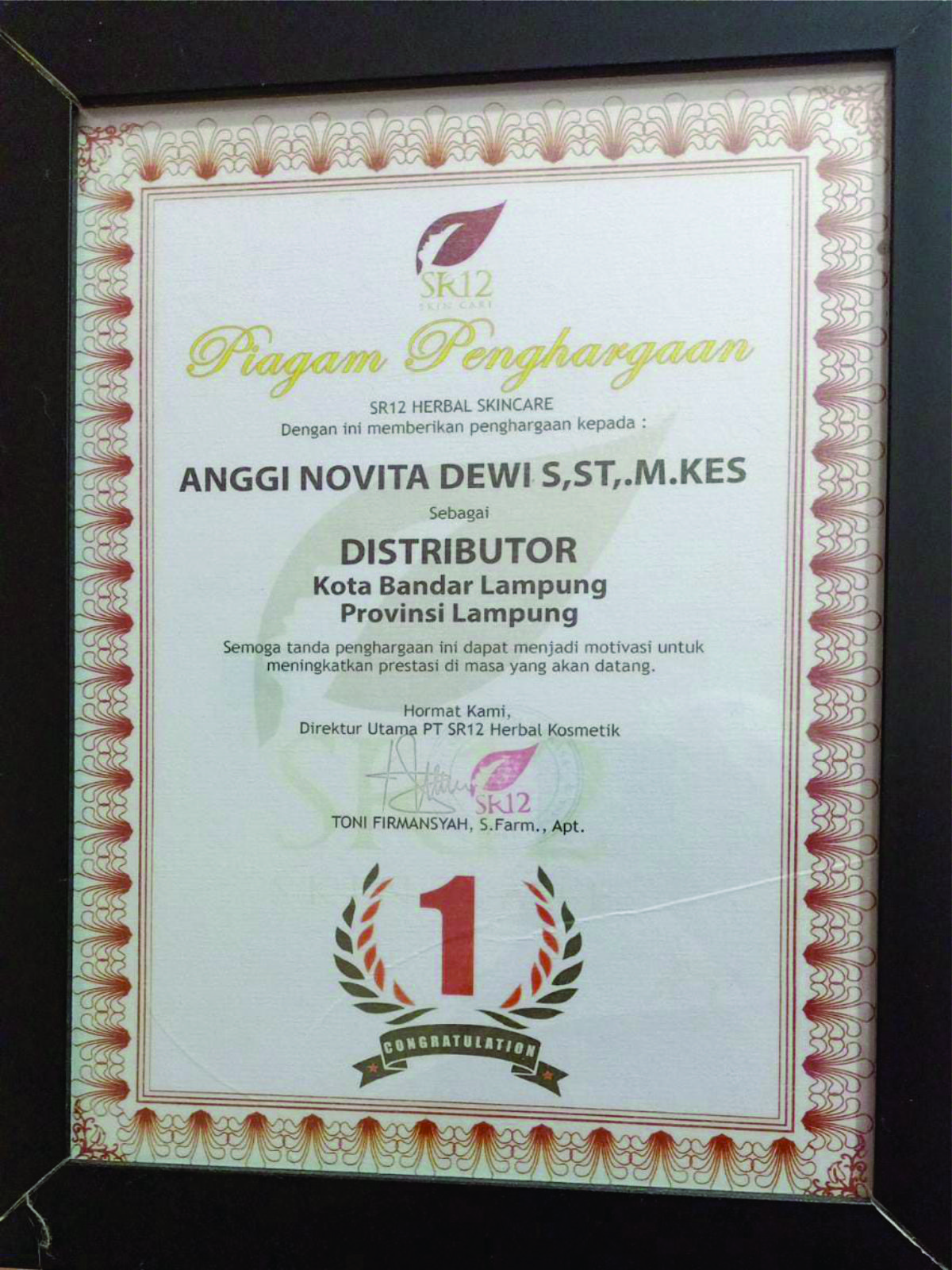 Perkenalkan Saya Anggi Novita Dewi, S.ST. M.Kes , Distributor Utama SR12 Bandar Lampung ( Leader Dari Berkah Squad SR12 ).